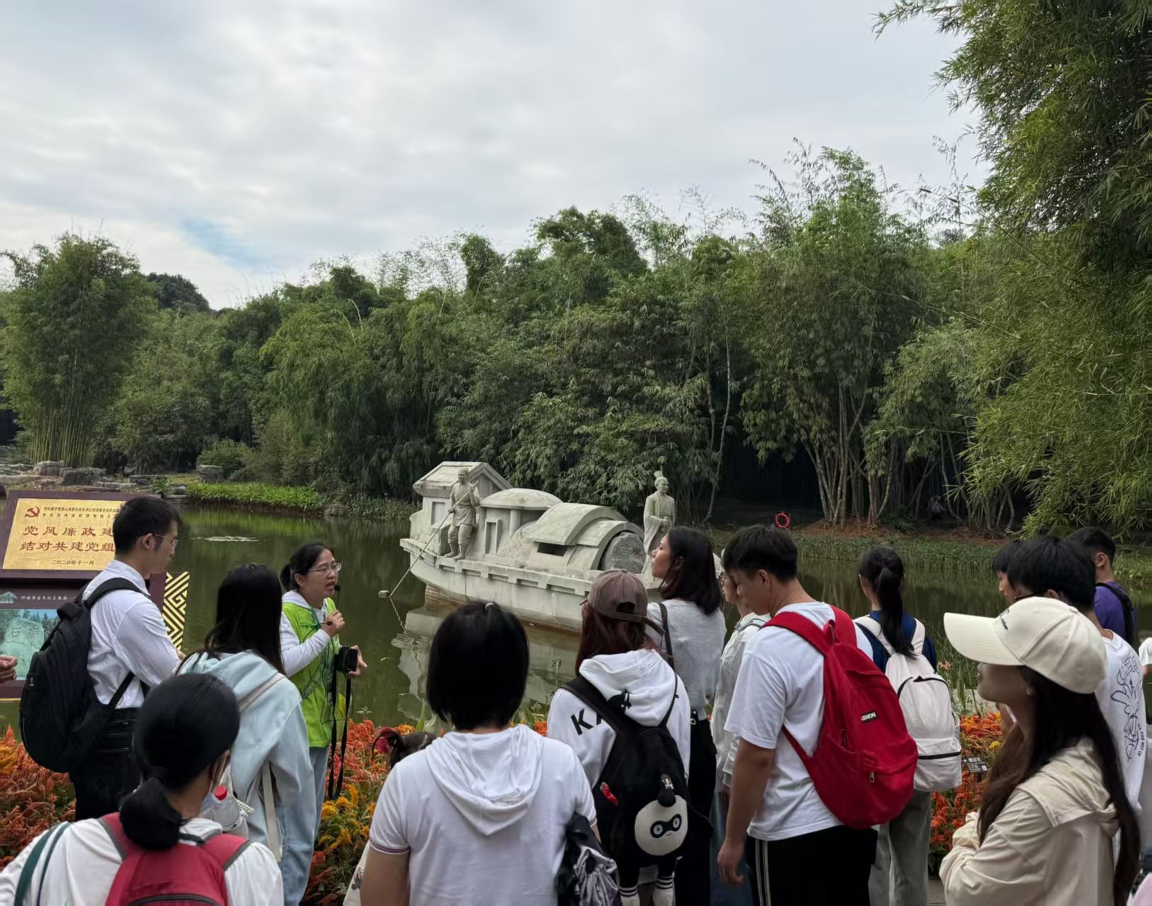 最后,全体党员同志走进竹园,来到青秀山竹园廉洁文化主题园,依次参观了名人典故雕塑,学习了“廉石压舱”的历史典故,于翠竹环绕间领悟竹之节与廉之守的内在共鸣。