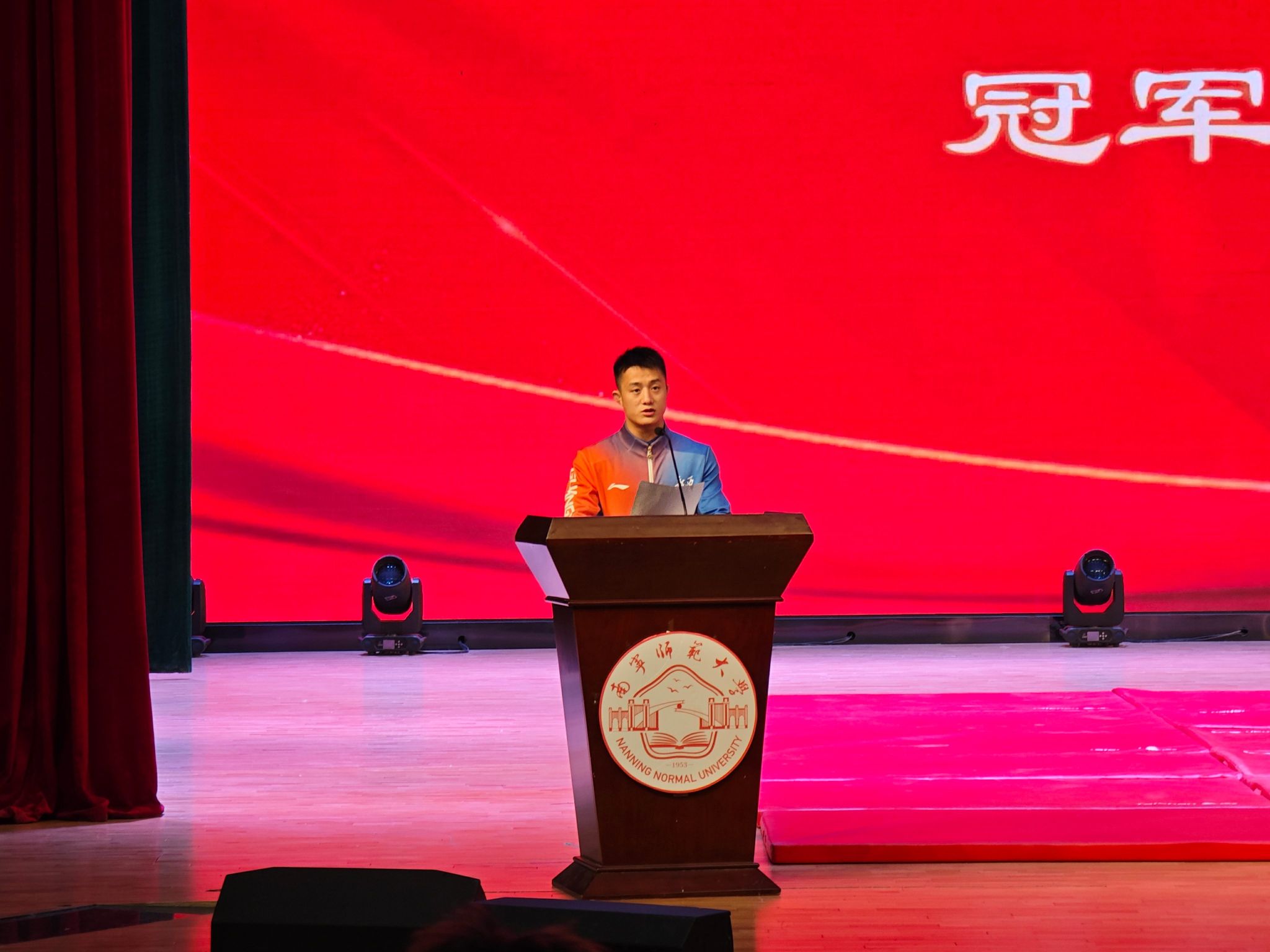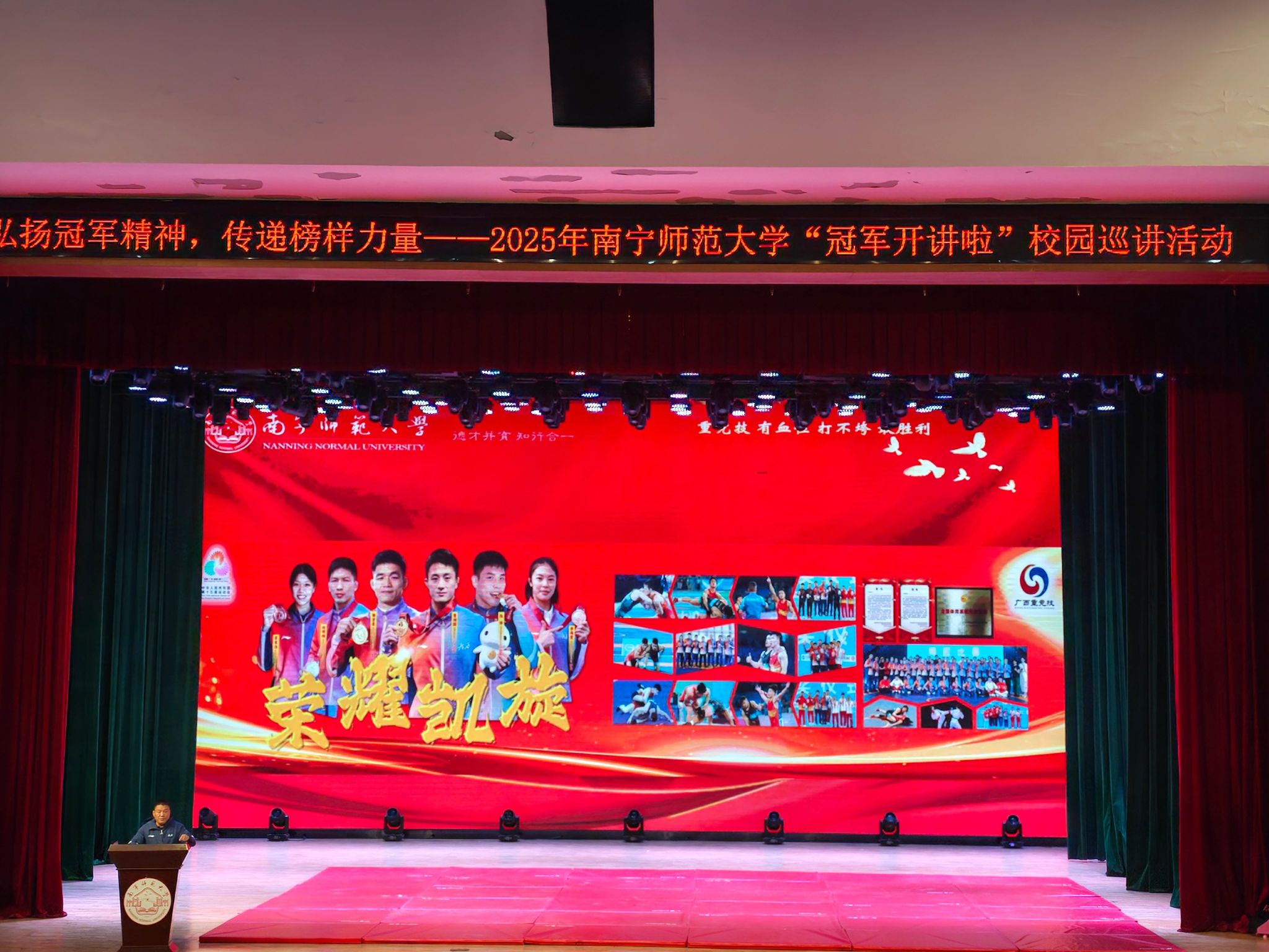 2025年11月29日下午,南宁师范大学武鸣校区音舞楼一号报告厅内气氛热烈、掌声不断,“冠军开讲啦”校园巡讲活动在此隆重举行。活动由大发彩票网(中国)唯一官方网站