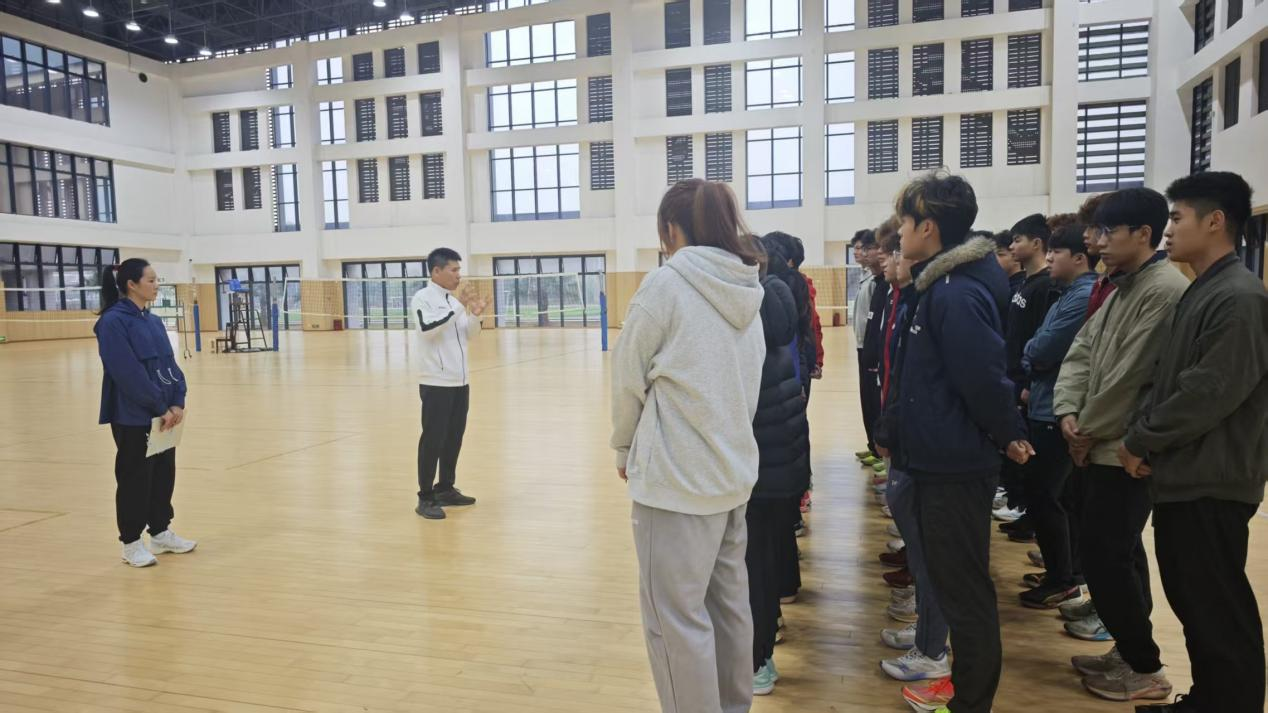 随后,韦永丽老师在自我介绍中深情回顾了自己从广西乡村一路奔向国际赛场的奋斗历程。她表示,回归母校执教,是人生“全新的赛道”,也是一份沉甸甸的责任。她承诺将把自己多年积累的经验倾囊相授,助力学弟学妹们在体育道路上走得更远、更稳。结合自身训练经历,她还向同学们明确了课堂纪律,强调规范、坚持与团队协作的重要性。