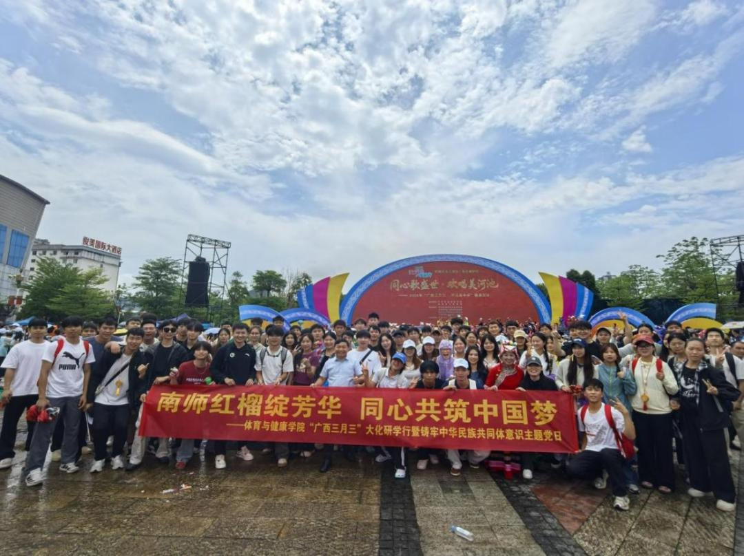活动紧扣2026年“广西三月三”的节日主题,是一场集民族风情、东盟交流、AI科技体验于一体的文旅盛会。师生沉浸式参与民俗文化展演和节庆互动,现场观摩碰蛋节、铜鼓舞、山歌等非物质文化遗产项目,在亲身体验中感受中华优秀传统文化的博大精深,体悟民族团结的深厚情感与乡村振兴的丰硕成果。此外,校男子篮球队与大化瑶族自治县男子篮球队进行了一场友谊赛,双方以球会友,在竞技交流中增进情谊,充分展现了顽强拼搏的体育精神和团结协作的良好风貌。此次比赛也是学院推动产教融合、探索“体育+产业”发展路径的一次生动实践,为后续深化校地合作、服务地方体育产业发展奠定了基础。